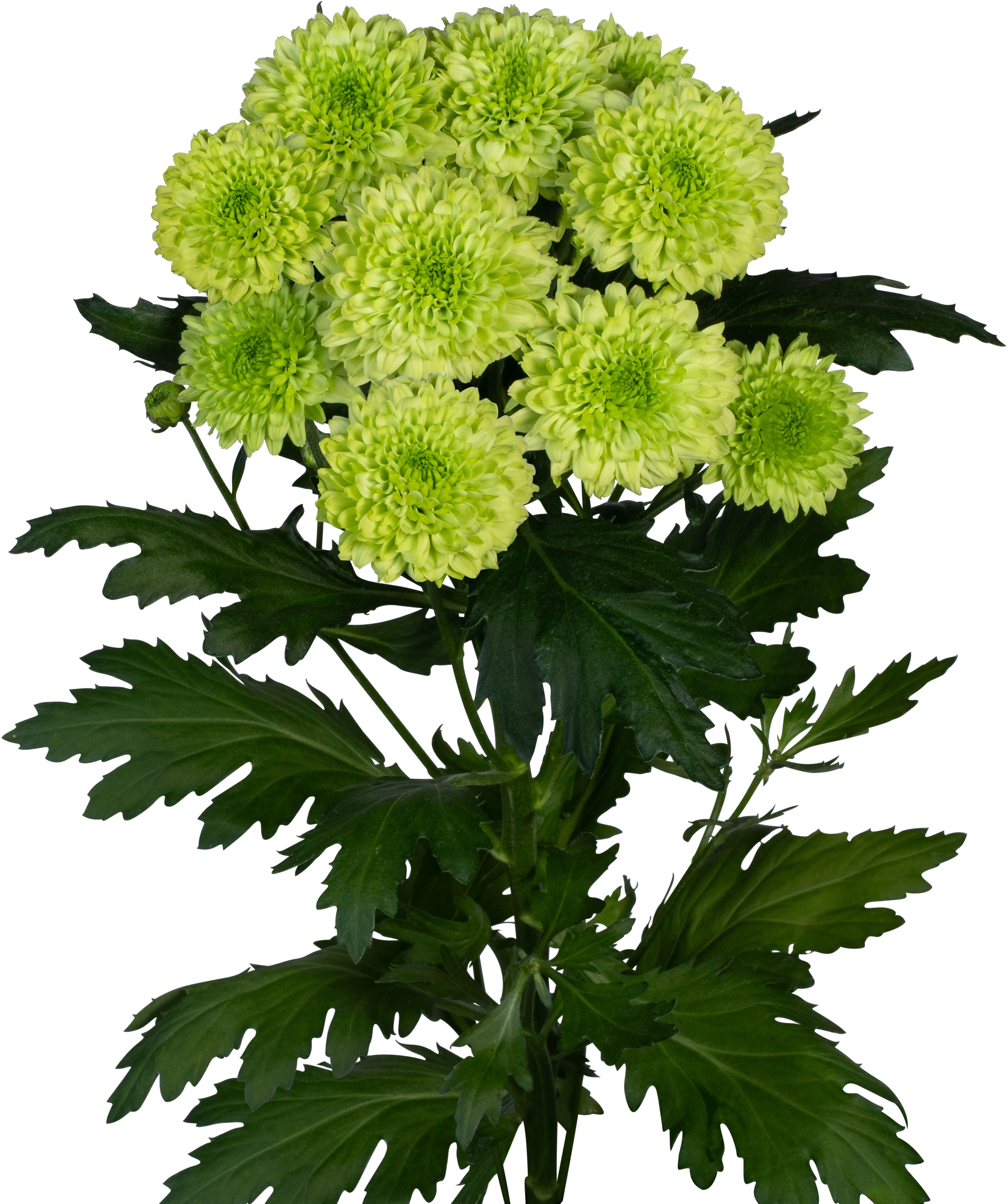 Daudzziedu krizantēma grieztiem ziediem siltumnīcā. Zied 44. - 46. nedēļā. Reakcijas laiks - 7,5 nedēļas.