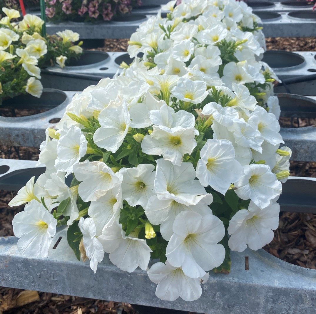 ECO-XXL 50mm Ellepot, 7 nedēļas audzēti, vidēja auguma petūnijas ar apaļu, kuplu (krūmveida) struktūru, labi sazarotas, agri ziedošas, spilgti krāsu ziedi, pusnokarena galotņots