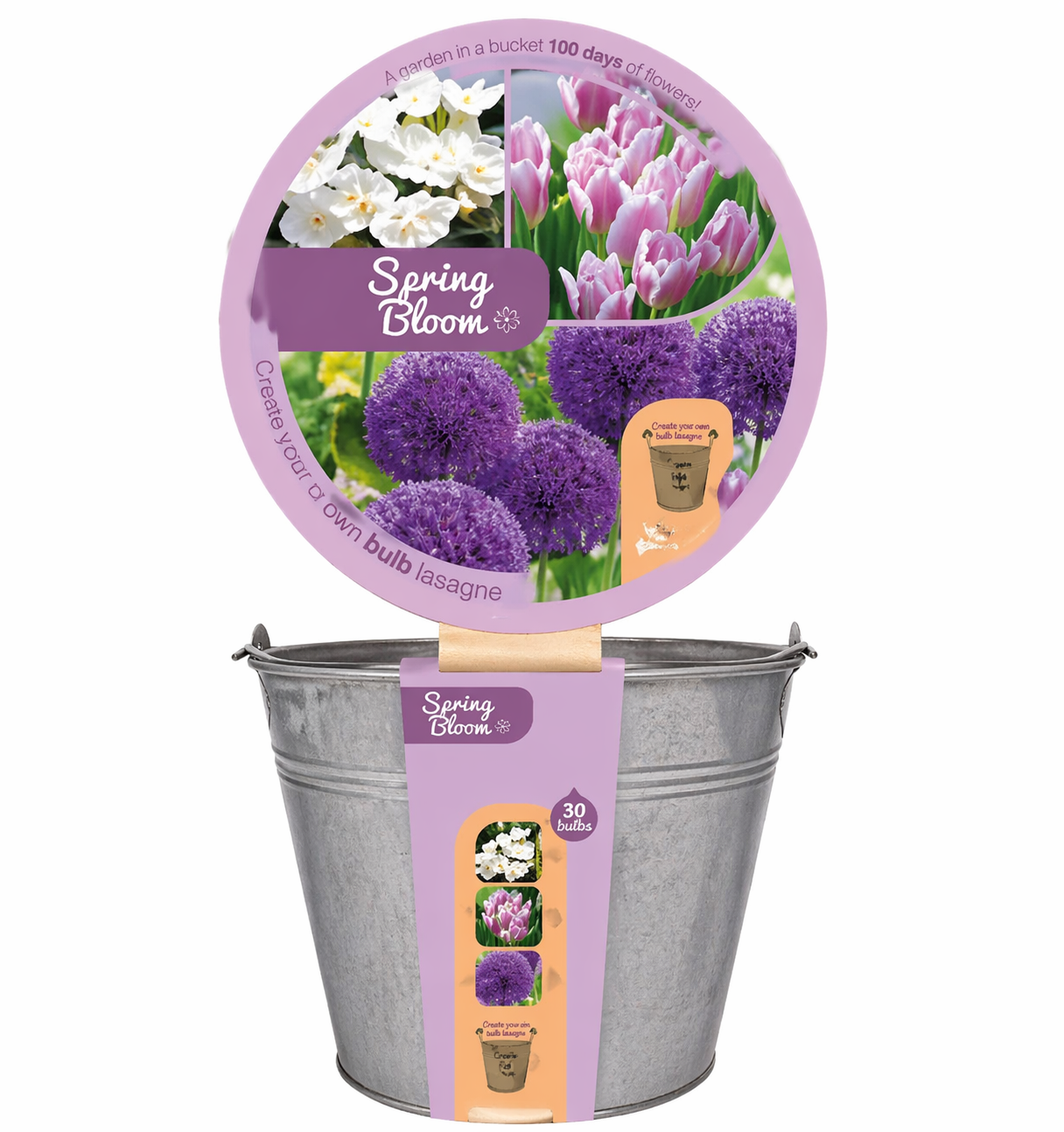 Komplekts sīpolpuķu lazanjas veidošanai. Metāla spainis ar dažādu šķirņu sīpoliem. Spainī ir 30 dažādi sīpoli (krokusi, tulpes, dekoratīvie sīpoli). Lieliski piemērots pavasara "sīpolpuķu lazanjas" veidošanai.