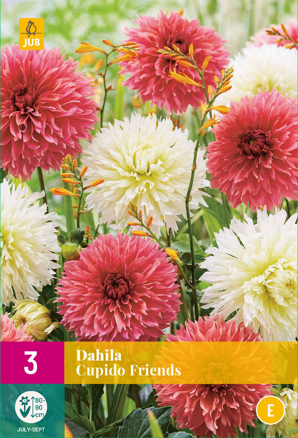 XXL izmēra paka mazumtirdzniecībai ar lielu, krāsainu attēlu un audzēšanas instrukciju attēla aizmugurē. Var izkārtot tirdzniecības plauktā uz āķiem. Šķeltziedu tipa dālijas. Augstums 80-90 cm. Jums būs 5 iepakojumi. Vienā iepakojumā 3 gab.