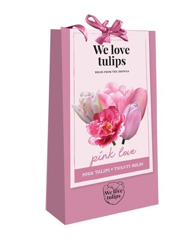 Dāvanu iepakojums ar 20 dažādām tulpēm rozā un baltas krāsas ietvaros. Tulpju maisījums īpaši skaistā iepakojumā, gatavs dāvināšanai. Augstums 45 cm.Vienā iepakojumā ir 20 sīpoli.